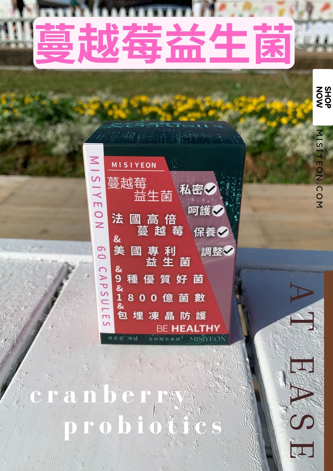 MISIYEON 蔓越莓益生菌 【每日呵護 自在綻放】 法國植萃極致濃縮蔓越莓 有紅寶石之稱的蔓越莓,豐富的類黃酮、A型前花青素、單寧酸、有機酸,呵護的最佳選擇。 美國嚴選9種複合益生菌 含3種專屬私密菌6種綜合優質菌,配合專利包埋凍晶技術,緩釋直達,呵護不止1+1。 熱銷多年的根源保健,呵護自在高度有感,消費者好評回購!